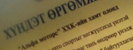 | Шилдэг ивээн тэтгэгч байгууллагаар шалгарлаа. | Байгуулагдаад 15 жил болсон Альфа Моторс компани авто спортыг дэмжиж 2011 оны 9 сарын 17-ны билэгт сайн өдөр Монголын Авто Мастеруудын холбоотой хамтран “Альфа Моторс 15” мастер кросс уралдааныг 15 жилийнхээ ойг тохиолдуулан морингын даваанд амжилттай зохион байгуулсан билээ. | | | | |