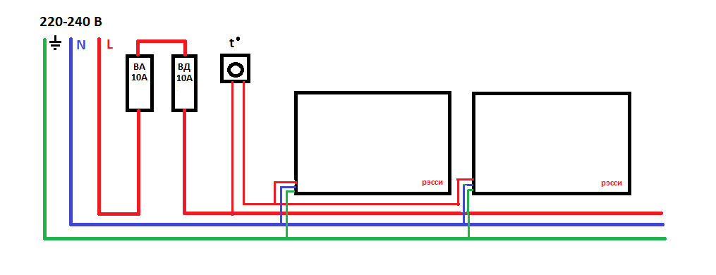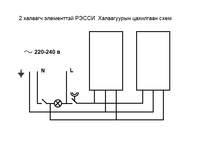 Терморегулятораар дамжуулан цахилгаан хэлхээнд холбох схем: