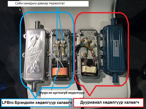 LF Bros хөдөлгүүр халаагчийн талаарх техникийн шинэчлэлт8 хуурамч бүтээгдэхүүнээс сэргийлэх талаар тус компанийн зүгээс явуулж байгаа бодлого, бүтээгдэхүүний ялгааны талаар тус компанийн мэргэжилтнүүд дэлгэрэнгүй танилцуулсан нь энэ өвөл манай компаниас шинээр авто эзэмшигчдэд танилцуулж байгаа хөдөлгүүр халаагчийн талаарх шинэ мэдээллийг цаг алдалгүй та бүхэнд хүргэх боломж олгож байгаа юм. Тухайлбал Харбин хотод үйлдвэрлэдэг LF Bros хөдөлгүүр халаагчийг Хятадад дууриамлаар үйлдвэрлэж байгаа нь маш их бөгөөд дууриамал болон жинхэнэ бүтээгдэхүүн хоорондын ялгааг та бүхэнд товчлон хүргье.
