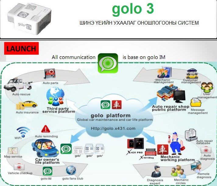 Энэ боломжийг хэрэглэгчдэд олгож буй golo 3 төхөөрөмж нь машины оношлогооны залгуурт холбогдох бяцхан төхөөрөмж бөгөөд Bluetooth, Wi-Fi, GPRS зэрэг холболтын технологийг ашиглан REAL TIME DATA буюу хөдөлгүүнд оролцож байх үеийн машины мэдээллийг цуглуулах, эвдрэл гэмтлийн мэдээлэл, мэдээллийн урсгал, байршлын мэдээлэл, машины төлөв байдал, алсын зайн оношлогоо, тээврийн хэргслийн тусгай хяналт, тээврийн хэрэгслийн дохиолол хамгаалалтын систем, хэрэглэгчдийн форум, Голо туслах, газрын зургийн үйлчилгээ гэх мэт автомашины аюулгүй байдлыг хангахад чиглэсэн олон үүргийг гүйцэтгэх боломж олгосон шилдэг төхөөрөмж болсон юм. Манай компани шинэ ондоо хэрэглэгч та бүхэндээ энэхүү гайхамшигт төхөөрөмжийг хүргэх болно. LF Bros